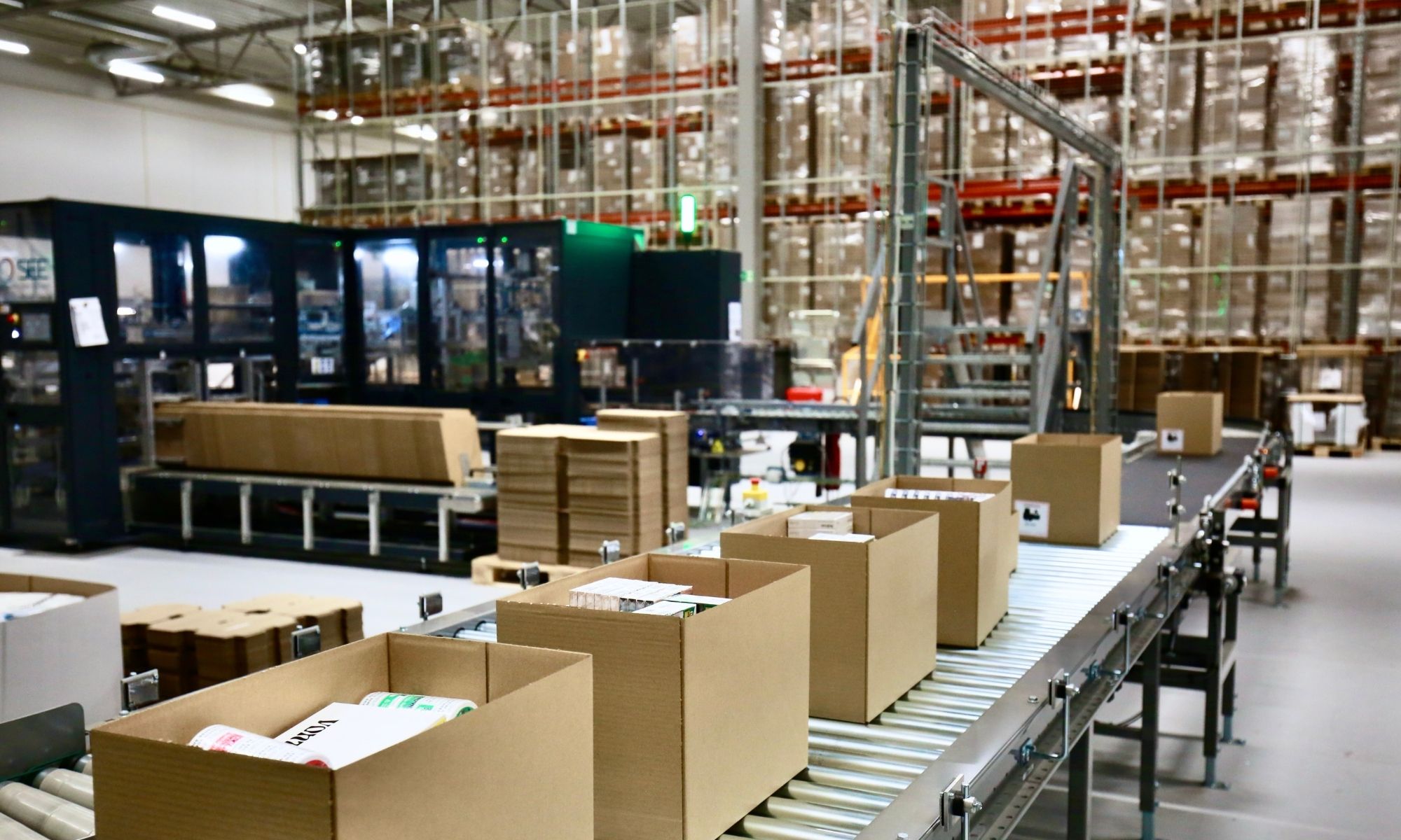På SMD Logistics med sin Autostore är varje paket ett exempel på smart miljöoptimering. Tack vare automatiska kartongförslutare som anpassar lådans storlek efter innehållet, minskar mängden luft i paketen med i snitt 30 %. Det innebär färre transporter, lägre utsläpp – och mindre onödigt emballage.
