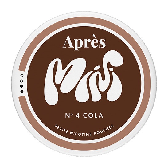 Après No.4 Cola Mini är ett tobaksfritt vitt snus från Après Group, tillverkat i mini-format med fokus på balanserad nikotinfrisättning. Nikotinstyrkan uppgår till 8 mg/g och styrkan är klassificerad som 2 Normal. Snuset tillverkas i Stockholm och innehåller totalt 20 prillor per dosa. Prillan väger 0,4 gram och har en torr yta med en fuktigare kärna, vilket bidrar till jämn frisättning av nikotin över tid. Snuset tillhör kategorin Vitt snus.