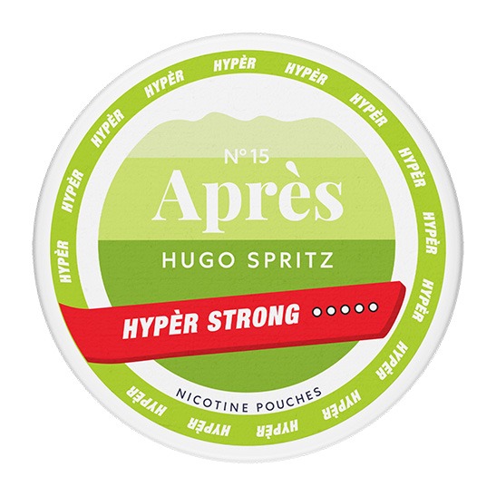 Après Hugo Spritz Hyper Strong delar smakprofil med Hugo Spritz-serien – fläder som primärsmak med toner av mynta och lime. Bismaket ger en fruktig citruston mot den blommiga flädertonen. Aromprofilen är identisk med Normal-varianten men snuset levererar en markant högre nikotinhalt.