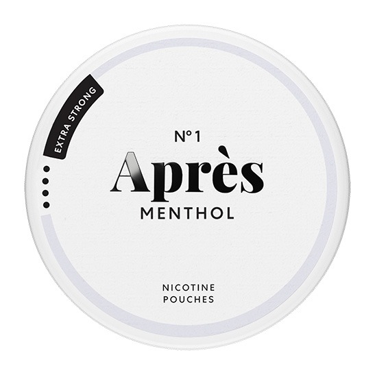 No.1 Après Menthol Extra Strong är ett tobaksfritt Vitt Snus från Après Group, tillverkat i Slim format med fokus på kontrollerad nikotinfrisättning och tydlig mentholkaraktär. Nikotinstyrkan uppgår till 15 mg/g, och styrkan är klassificerad som 4 Extra Stark. Snuset tillverkas i Stockholm och innehåller totalt 20 prillor per dosa. Prillan har en torr yta med en fuktigare kärna, vilket bidrar till jämn frisättning av nikotin över tid. Snuset tillhör kategorin Vitt snus.