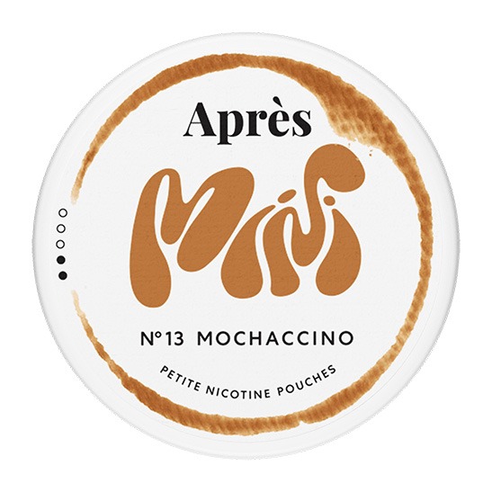 Après Mochaccino Mini är ett tobaksfritt vitt snus från Après Group, tillverkat i mini-format med fokus på balanserad nikotinfrisättning. Nikotinstyrkan uppgår till 8 mg/g och styrkan är klassificerad som 2 Normal. Snuset tillverkas i Stockholm och innehåller totalt 20 prillor per dosa. Prillan väger 0,4 gram och har en torr yta med en fuktigare kärna, vilket bidrar till jämn frisättning av nikotin över tid. Snuset tillhör kategorin Vitt snus.