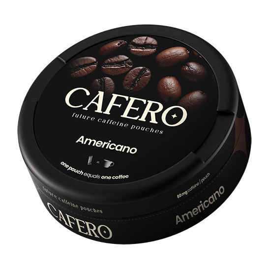 CAFERO Americano är ett nikotinfritt koffeinsnus med smak av kaffe i slim format. Varumärket CAFERO tillverkas av LUNA Corporate och varje dosa innehåller 20 prillor. Varje prilla väger 0,65 gram och innehåller 80 mg koffein, vilket motsvarar cirka 123 mg koffein per gram. Slim formatet har en avlång form med 23 % fukthalt, vilket bidrar till en jämn frisättning av koffein och smak. Produkten tillhör kategorin koffeinsnus.