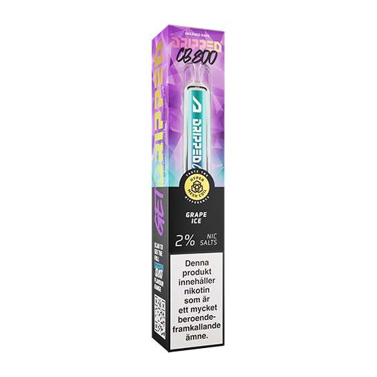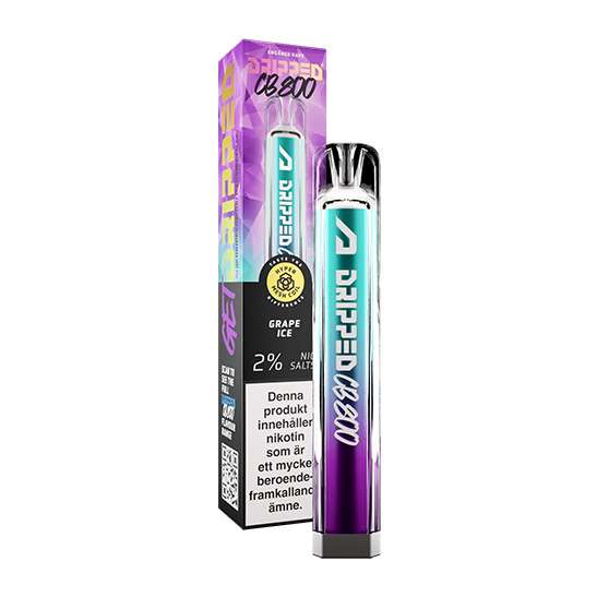 Dripped Crystal Bar Grape Ice 20mg är en engångsvape, via Vapehuset, under varumärket Dripped. Smaken är druvor med en kylande effekt. Produkten är färdig att använda och kräver varken laddning eller påfyllning. Varje enhet innehåller cirka 800 bloss och har en nikotinstyrka på 20 mg/ml.