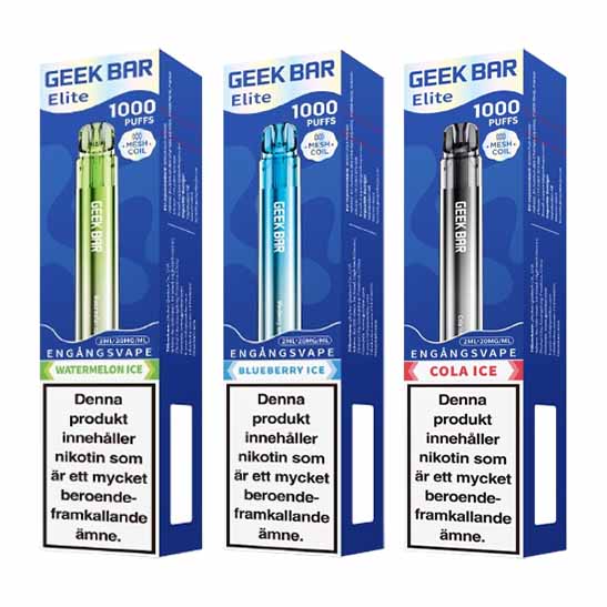 - GEEK BAR Elite 1000 Blueberry Ice 20 mg – Smaken av mogna blåbär med en iskall mentol.