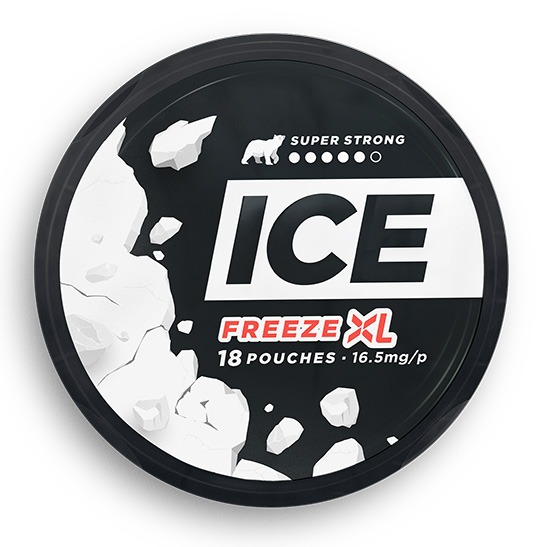ICE Freeze XL Super Strong innehåller 16,5 mg nikotin per gram och 16,5 mg per prilla. Med 18 prillor per dosa motsvarar det en total nikotinmängd på 297 mg per dosa. Styrkeklass 5 Super Stark placerar snuset i den högsta delen av styrkeskalan inom vitt snus.