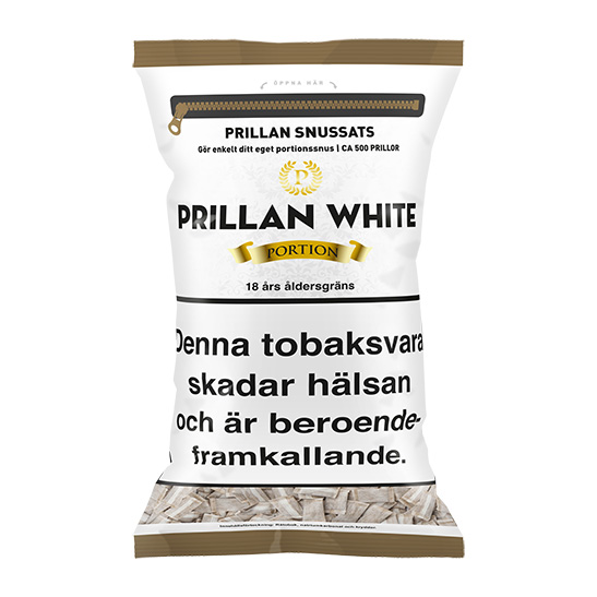 Prillan Portion White är ett snus av typen white portion som blandas och färdigställs hemma. Varje paket innehåller cirka 500 färdiga prillor, vilket motsvarar omkring 25 dosor. Den färdiga produktvikten uppgår till cirka 350 gram.