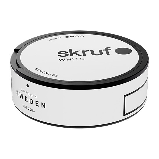 Snuset Skruf no 25 Slim Original White Portion har styrkan 2 Normal med ett nikotininnehåll på 10 mg per prilla vilket ger en nikotinhalt på 1,5%. Varje prilla innehåller 0,7 gram snus och en snusdosa består av 24 stycken prillor. Det ger en total snusvikt i en dosa på 16,6 gram.