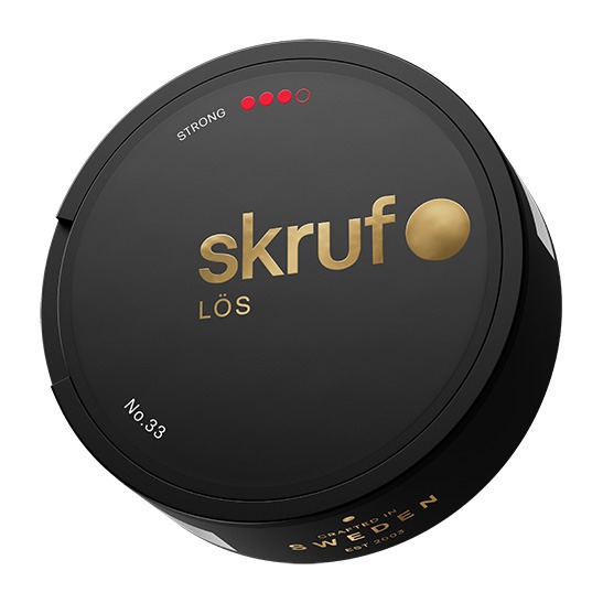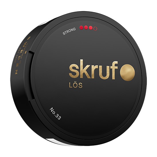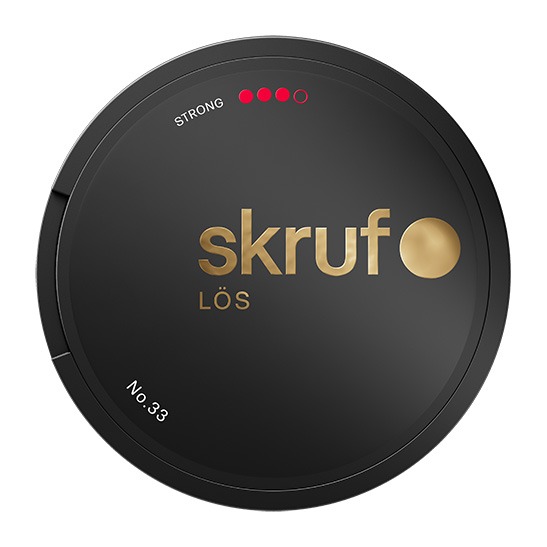 Skruf no 33 Lös Strong är ett Lössnus som har en mild smak av tobak med noter bergamott och rosenolja. Lössnuset tillverkas av Skruf Snus AB.