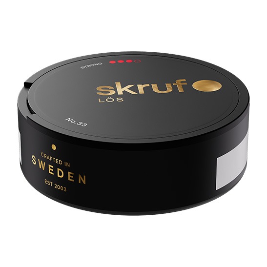 Snuset Skruf no 33 Lös Strong har en nikotinhalt på 1,0%. Varje dosa innehåller 42 gram snus. Snusets hållbarhet är ca 6 månader.
