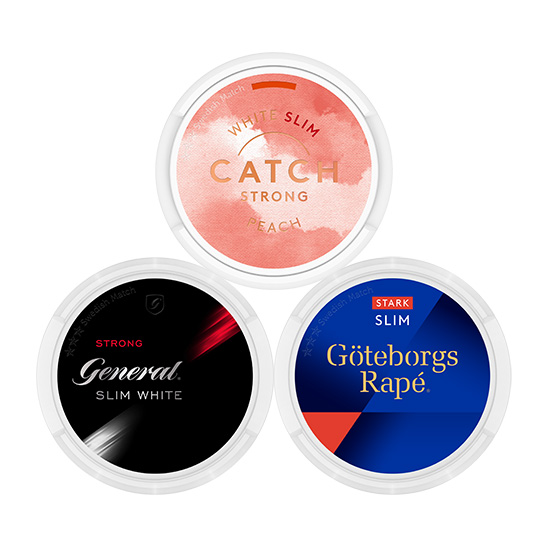 Swedish Match Slim Strong Mix 3 pack är snus av typen White Portionssnus från tillverkaren Swedish Match och innehåller en dosa av varje av följande snussorter;
