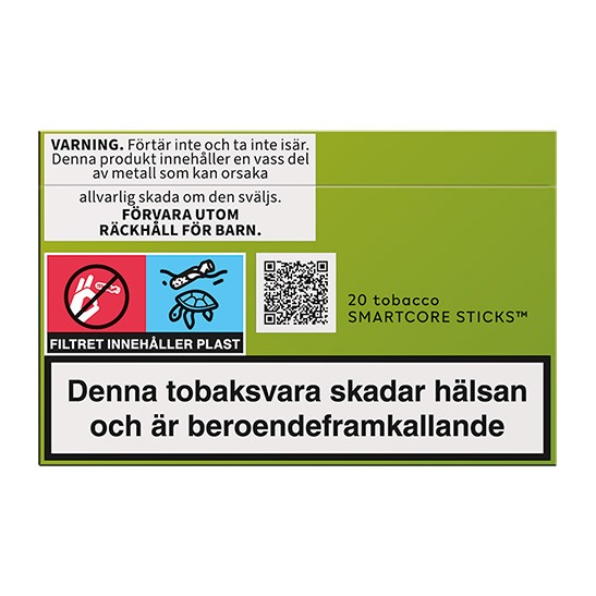 Använd inte andra generationens IQOS, IQOS Ilumas SMARTCORE-stickorna TEREA med tidigare generationer av IQOS, eftersom det kan skada din enhet. Ta inte isär eller svälj SMARTCORE-stickorna eftersom produkten innehåller en vass metalldel som kan orsaka skada om den sväljs. Förvara utom räckhåll för barn.