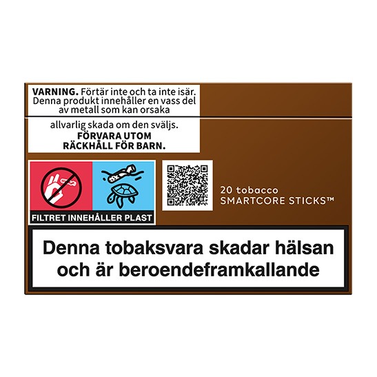 Använd inte andra generationens IQOS, IQOS Ilumas SMARTCORE-stickorna TEREA med tidigare generationer av IQOS, eftersom det kan skada din enhet. Ta inte isär eller svälj SMARTCORE-stickorna eftersom produkten innehåller en vass metalldel som kan orsaka skada om den sväljs. Förvara utom räckhåll för barn.