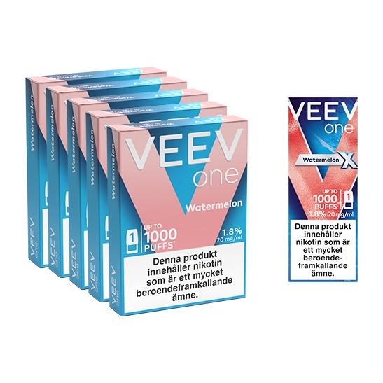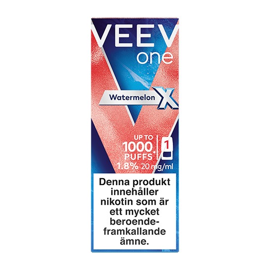 - VEEV ONE Pod Watermelon 20mg – med smak av vattenmelon.