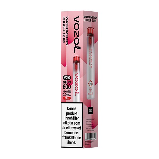 Vozol Neon 800 2.0 Watermelon Bubblegum kombinerar smak av vattenmelon med inslag av tuggummismak. Modellen levereras förfylld och klar att användas direkt ur förpackningen.