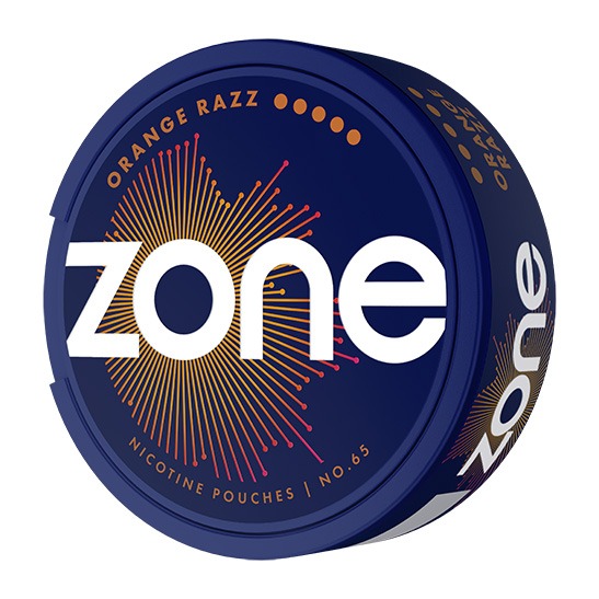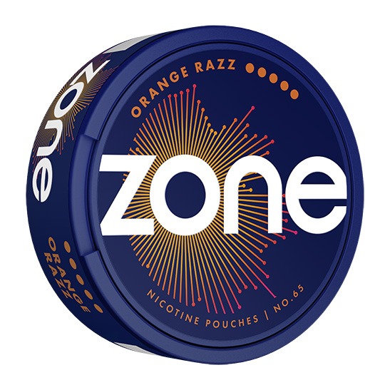 ZONE No65 Orange Razz Ultra Strong har smaken av apelsin med inslag av hallon och en mild kylande effekt, i formatet slim med en nikotinstyrka på 16 mg/g och styrkan 5 Super Stark. Snuset tillverkas av Skruf Snus AB och innehåller totalt 20 prillor per dosa. Varje prilla väger cirka 0,705 gram, vilket ger en total snusvikt om 14,1 gram per dosa. Formatet kännetecknas av smalare prillor med låg yt-fukthalt och en fuktigare kärna som ger jämn frisättning av nikotin. Snuset tillhör kategorin Vitt Snus.