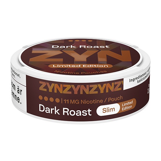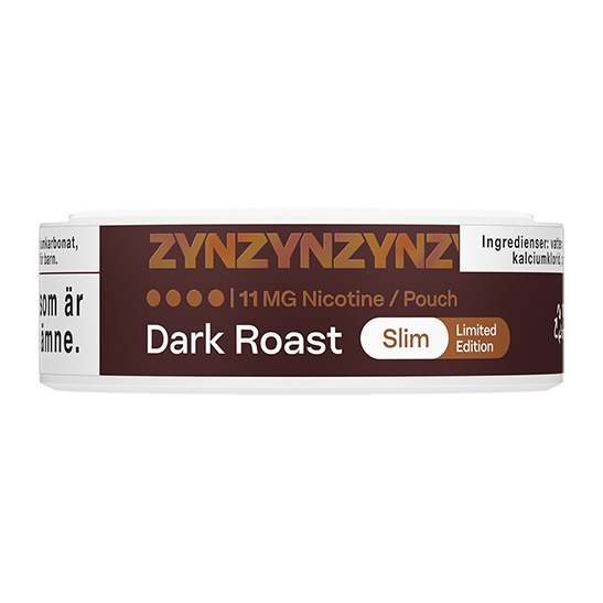ZYN Dark Roast Slim Extra Strong är ett tobaksfritt vitt snus från Swedish Match, ett svenskt företag med lång erfarenhet av nikotinprodukter. Snuset tillverkas i Slim format och har en nikotinstyrka på 16 mg/g, motsvarande cirka 11 mg nikotin per prilla, vilket ger styrkeklass 4 Extra Stark. Varje dosa innehåller 21 prillor. Prillorna väger 0,68 gram och är utformade för jämn frisättning av nikotin. Snuset tillhör kategorin Vitt Snus.