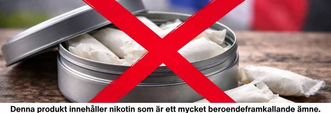 Nej. Sedan 1 april 2026 är det olagligt att föra in, inneha eller använda nikotinpåsar. Även en enstaka dosa kan beslagtas.